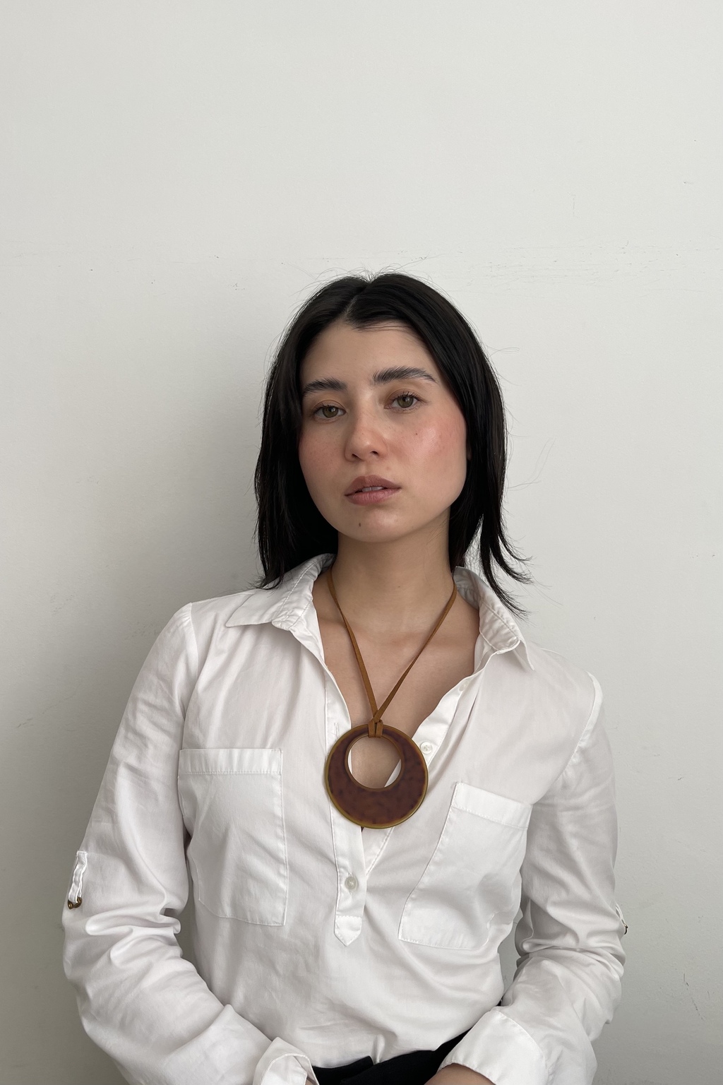 Um acessório bem atemporal e versátil, feito em camurça na cor caramelo e pingente de acrílico, possui fecho com banho em ouro velho!