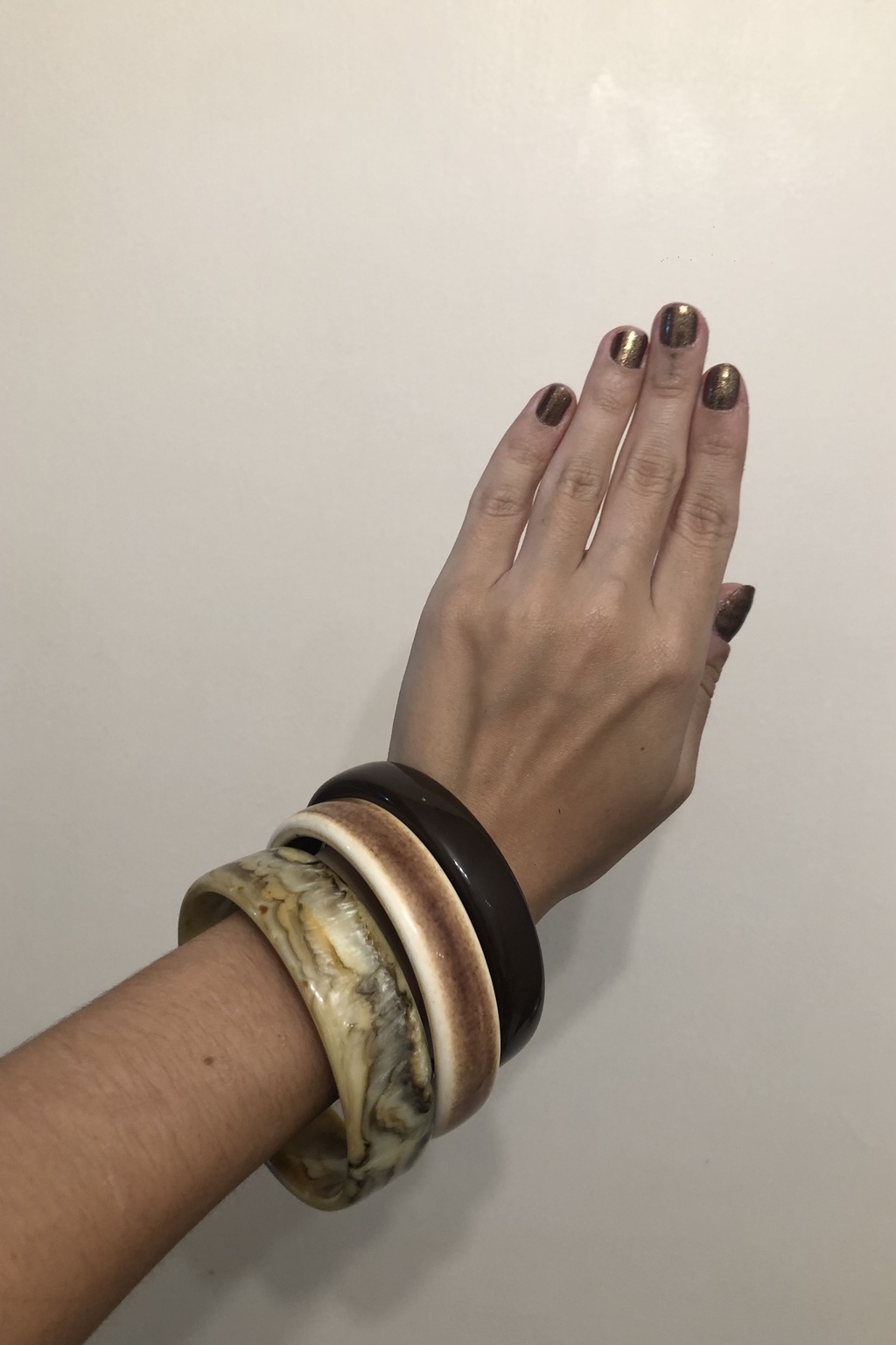 O combo contém três braceletes de resina que podem ser usados juntos para uma composição marcante ou separados para um toque mais minimalista!